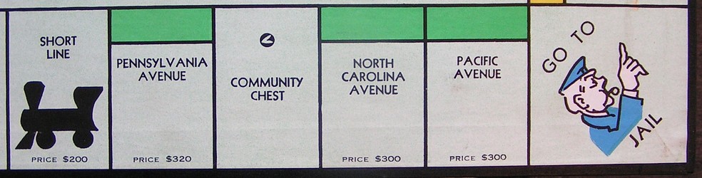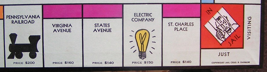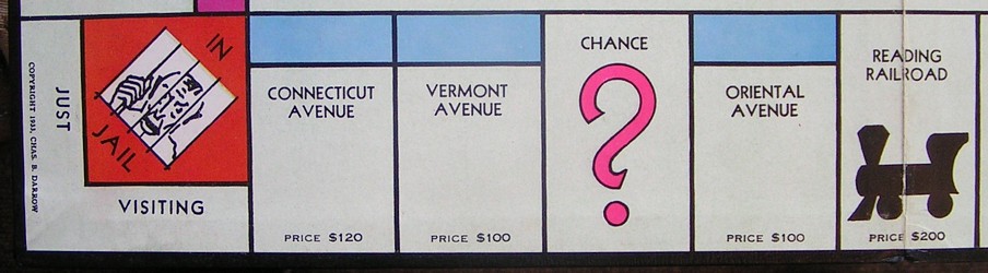 Note that the JAIL square has the 1933 Darrow Copyright reference. I believe this was eliminated once the stock of Darrow game boards was used up. Cool!