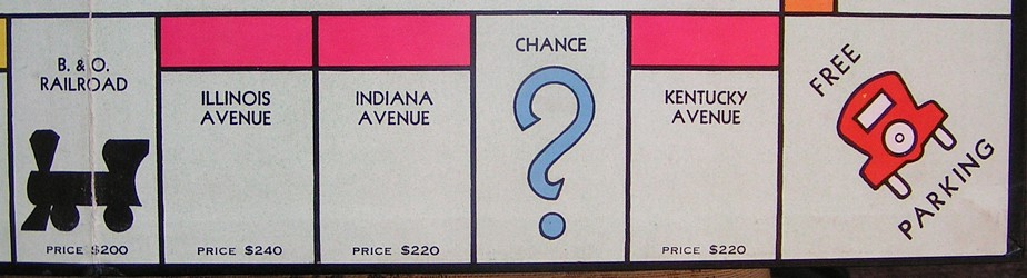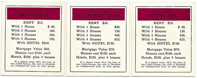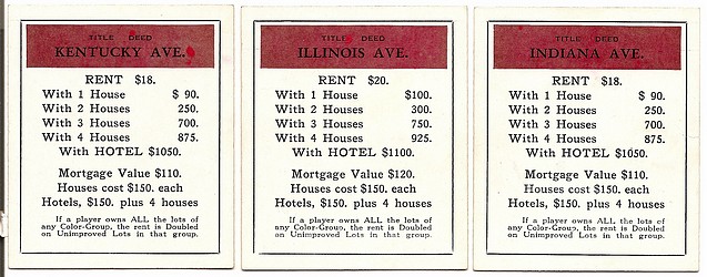 AND, notice that the normally red properties, INDIANA, ILLINOIS, and KENTUCKY were printed with more of a purple-brown color. Cool!