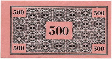 Parker Brothers money copied from Darrow's using the pink $500 and gold $100 bills. Parker Brothers quickly redesigned the money, switching the colors of the $500 and $100 bills, making the $500 bills gold and the $100 bills pink, thinking gold should be reserved for the highest denomination.